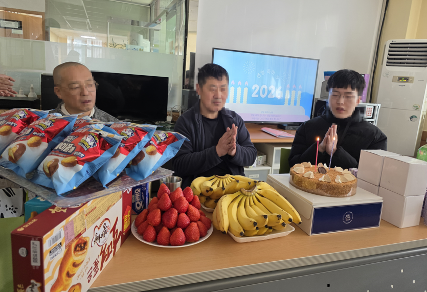 2월 생일잔치 페이지 정보 작성자 관리자 댓글 0건 조회 30회 작성일 26-02-06 17:32 목록 본문 2월 생일잔치~♬생일을 맞은 분들은 누구일까요?"송*유, 육*용, 최*복, 민*옥, 정*석생일축하선물을 파트너직원이 전달해 드립니다~회원 서로서로가 축하와 감사를 나누는 시간이었습니다. 다과를 나누며 게임을 하며 즐겁게 시간이 지났습니다. 다음에 다시 재밌는 생일잔치로 찾아뵙겠습니다.사랑합니다~ 감사합니다~사랑합니다! 감사합니다! 이전글2월 인식개선을 위한 플로깅 활동 26.02.11 다음글내 마음에 광합성 26.01.28 댓글 0 댓글목록 등록된 댓글이 없습니다.