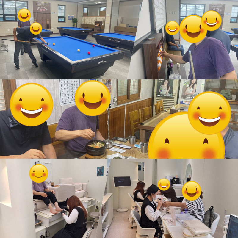 남자회원은 당구 활동을 통해 일상과 업무에서 쌓인 스트레스를 해소하고,