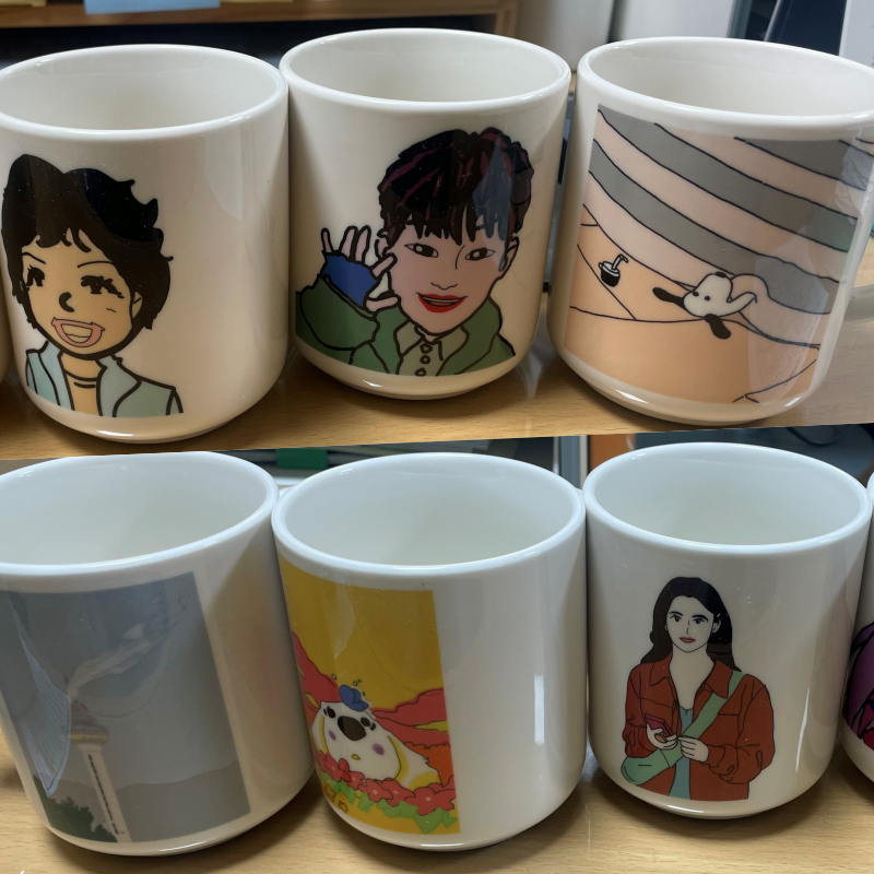 완성된 그림을 활용해 머그잔과 그립톡을 제작했습니다.
