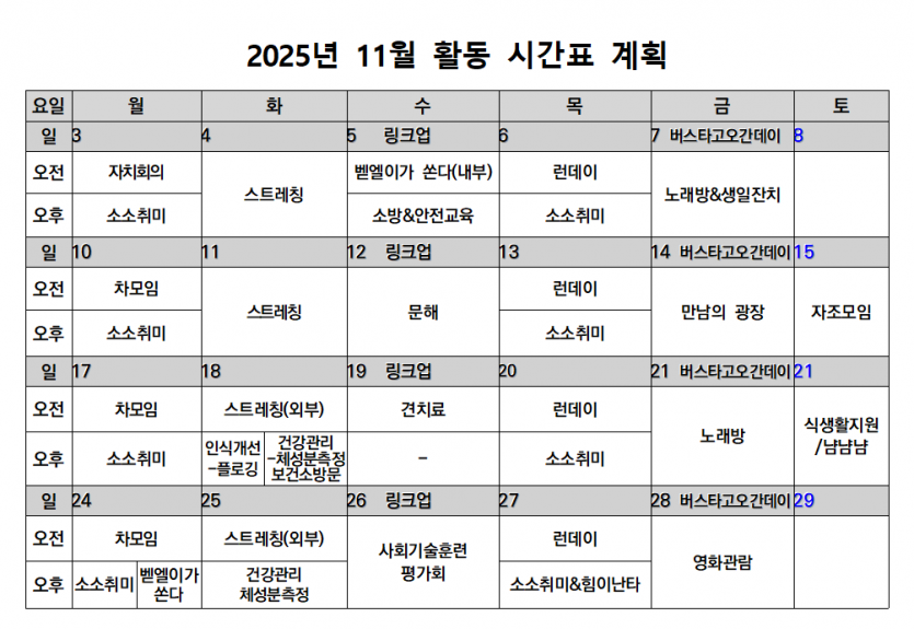 11월도 안전하고 건강하며 즐겁게 활동하도록 하겠습니다.